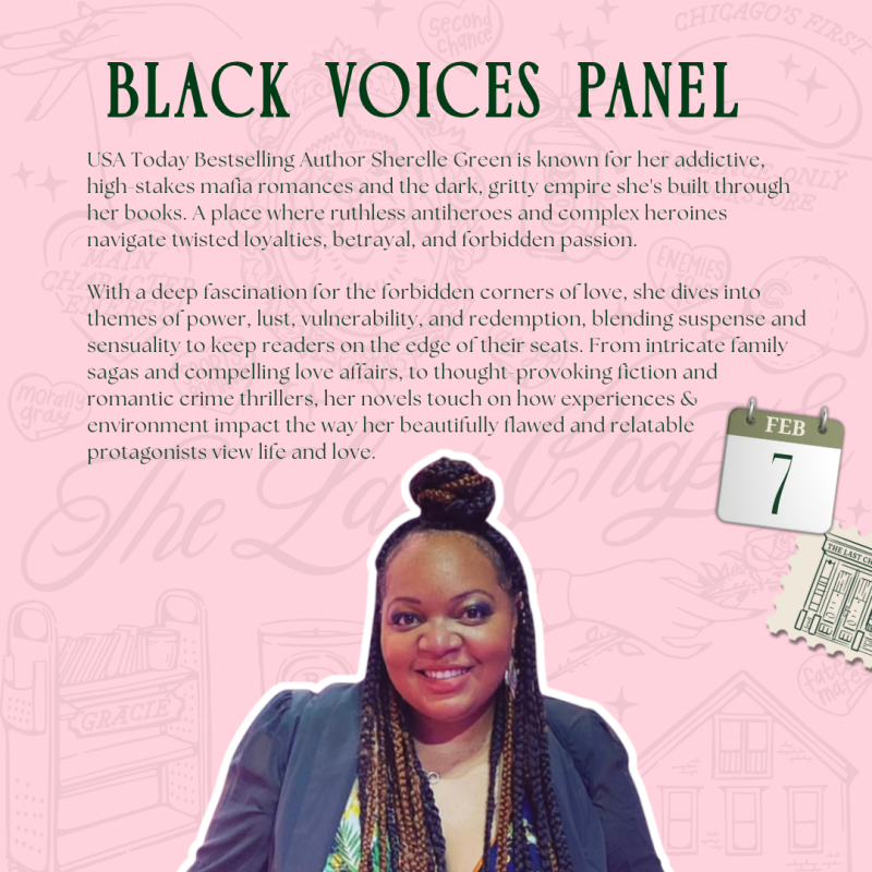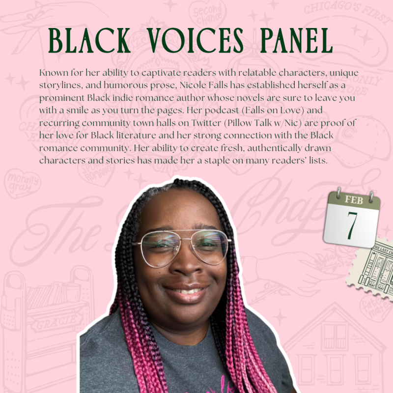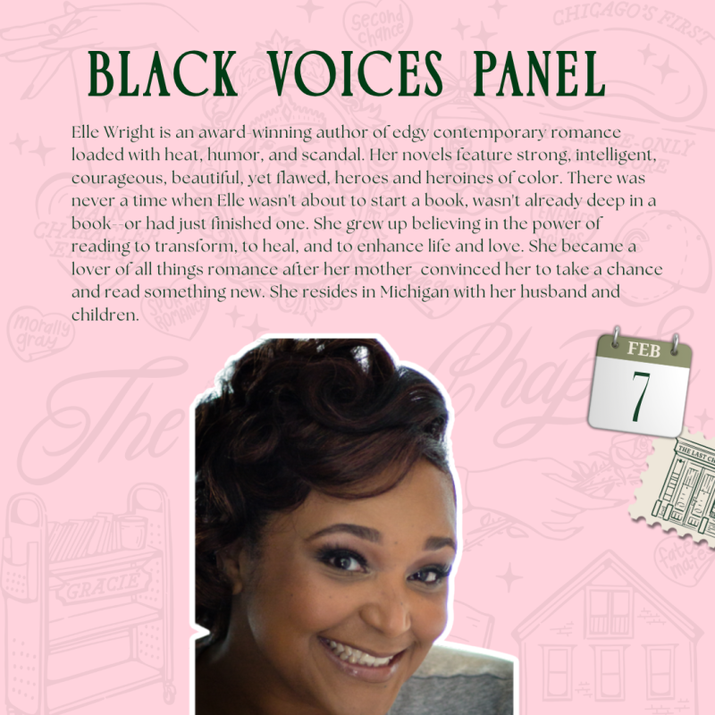 Come join us at The Last Chapter Book Shop for a Black Voices Panel featuring Sheryll Green, Angela Seals, Elle Wright, and Nicole Falls! Enjoy an engaging discussion centered on writing, representation, and the importance of Black voices within the romance genre.