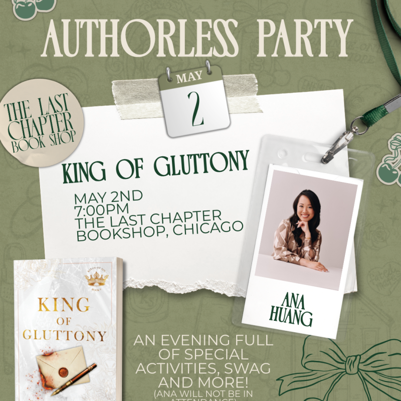 Grab a ticket to the KING OF GLUTTONY release party for a night of fun! Every ticket includes a SIGNED copy of King of Gluttony and an evening full of special activities, swag, and more for those in attendance. Additionally, there will be a giveaway to win a CUSTOM apron and a PR EDITION of King of Gluttony (one winner per store). Hurry before spots sell out! (Please note: Ana Huang will not be in attendance at these release parties.)