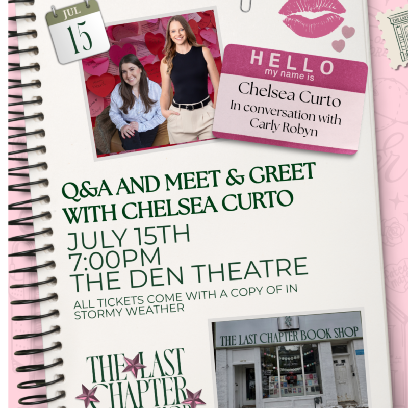 Come meet Chelsea Curto at the Den Theatre for a book signing event celebrating her latest release, In Stormy Weather! Stop by to meet the author, get your book signed, and connect with fellow romance readers. Each ticket will include a copy of In Stormy Weather. Tickets are non-refundable. All events are 18+ and everyone in attendance will require a ticket.