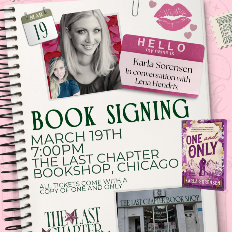 Come meet Karla Sorensen at The Last Chapter Chicago for a book signing event celebrating her latest re-release, One and Only! Stop by to meet the author, get your book signed, and connect with fellow romance readers.