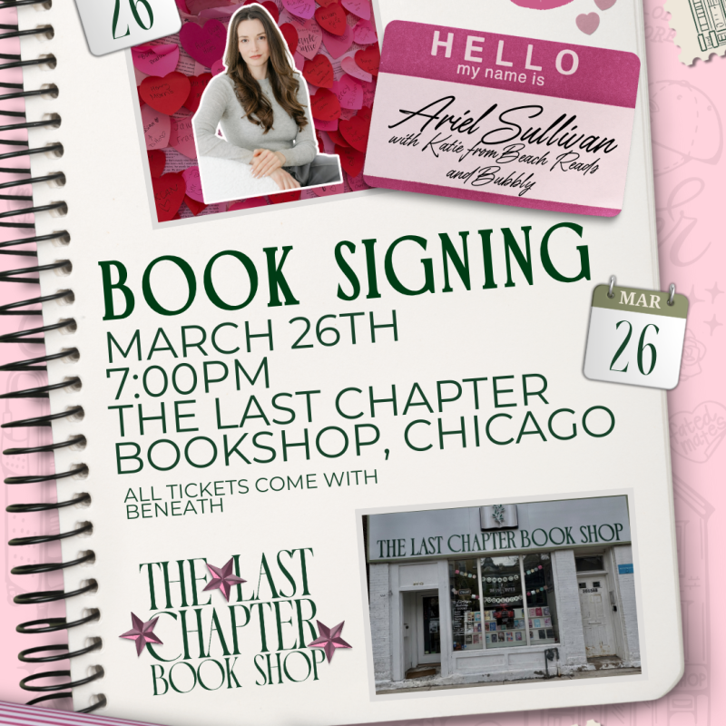 Come meet Ariel Sullivan and Katie from Beach Reads and Bubbly at The Last Chapter Book Shop for a book signing event celebrating her latest release, Beneath! Stop by to meet the author, get your book signed, and connect with fellow romance readers.