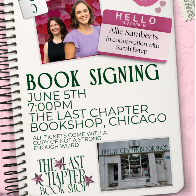 Come meet Allie Samberts at The Last Chapter Book Shop for a book signing event celebrating her latest release, Not A Strong Enough Word! Stop by to meet the author, get your book signed, and connect with fellow romance readers.