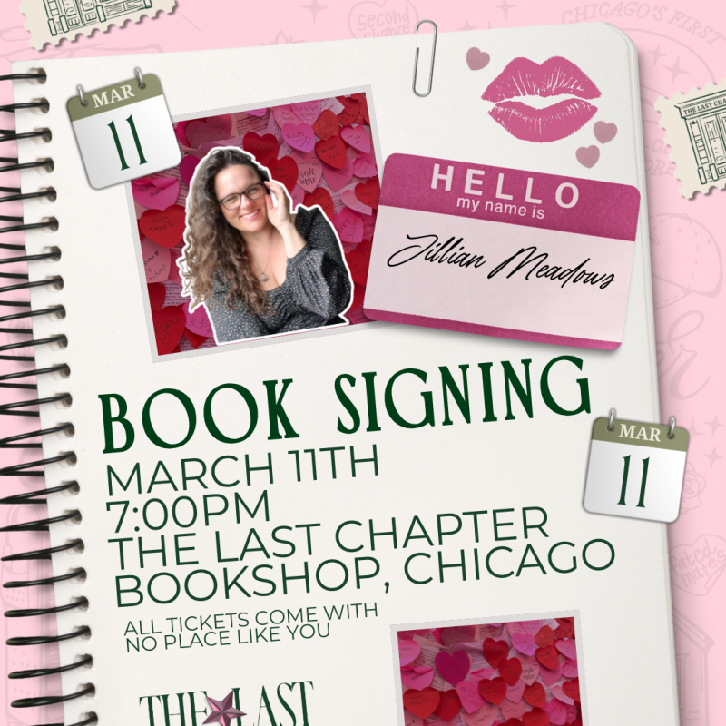 Come meet Jillian Meadows at The Last Chapter Book Shop for a book signing event celebrating her latest release, No Place Like You! Stop by to meet the author, get your book signed, and connect with fellow romance readers.